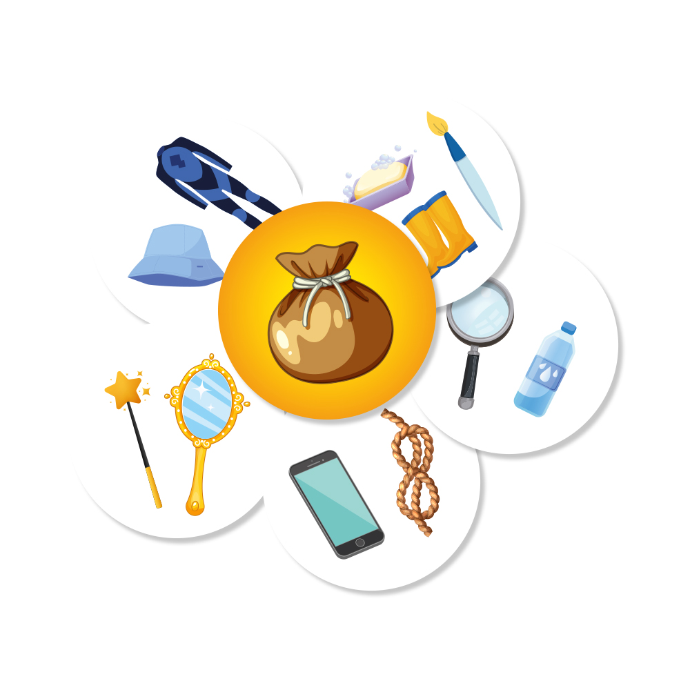 20 de Discuri de instrumente care reprezintă obiecte și unelte contribuind la rezolvarea situațiilor de pe cărțile de aventură.