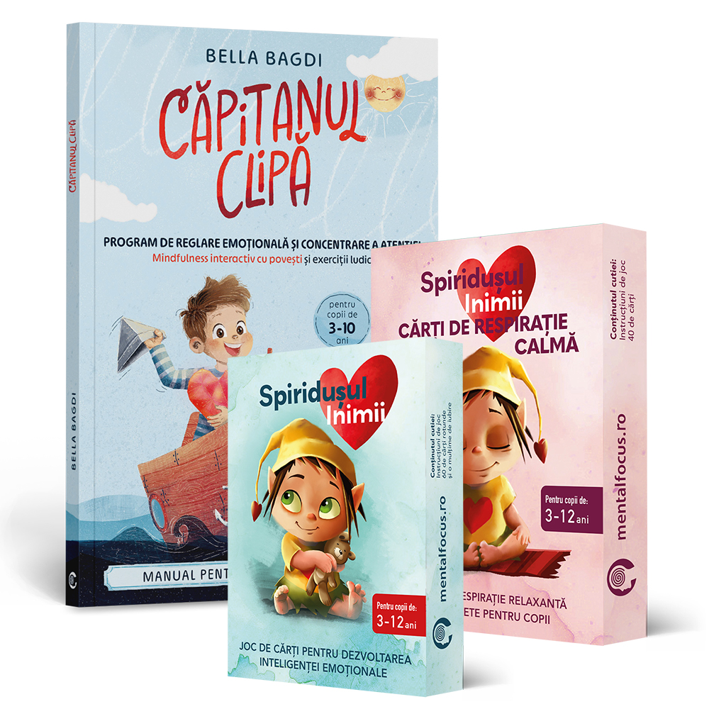 Jocul de cărți Spiridușul Inimii, Cărțile de respirație calmă Spiridușul Inimii și Căpitanul Clipă – Cu program de reglare emoțională și concentrare a atenției – totul într-un singur pachet.